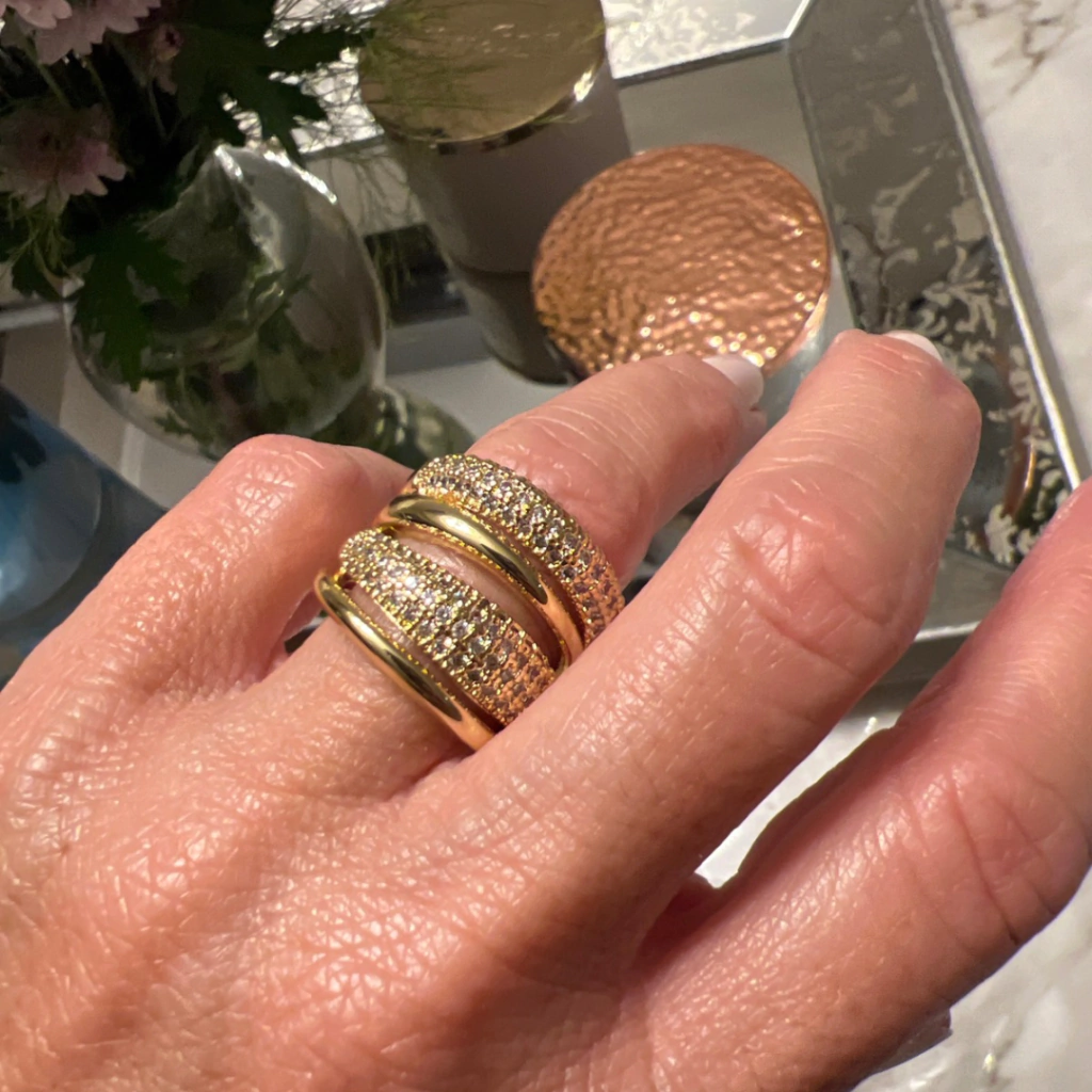 Material: aleación con baño de oro y piedras cubic