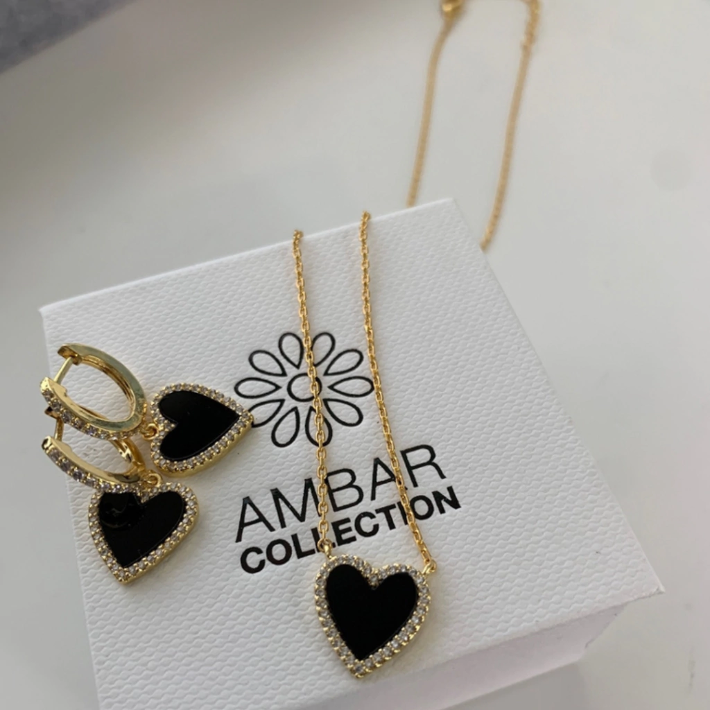 Aleación con baño de oro y corazón de nácar y piedras cubic