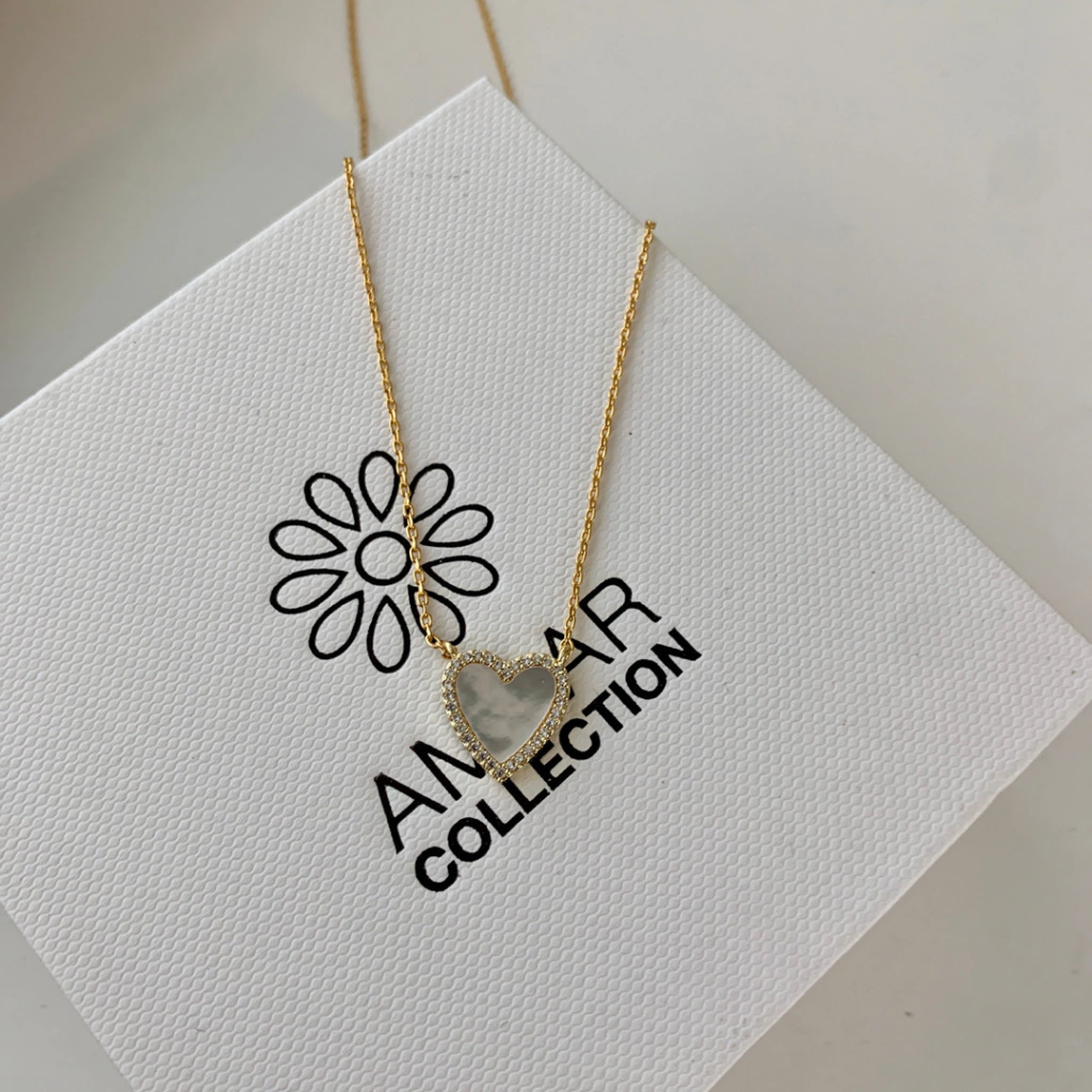 Aleación con baño de oro y corazón nácar y piedras cubic