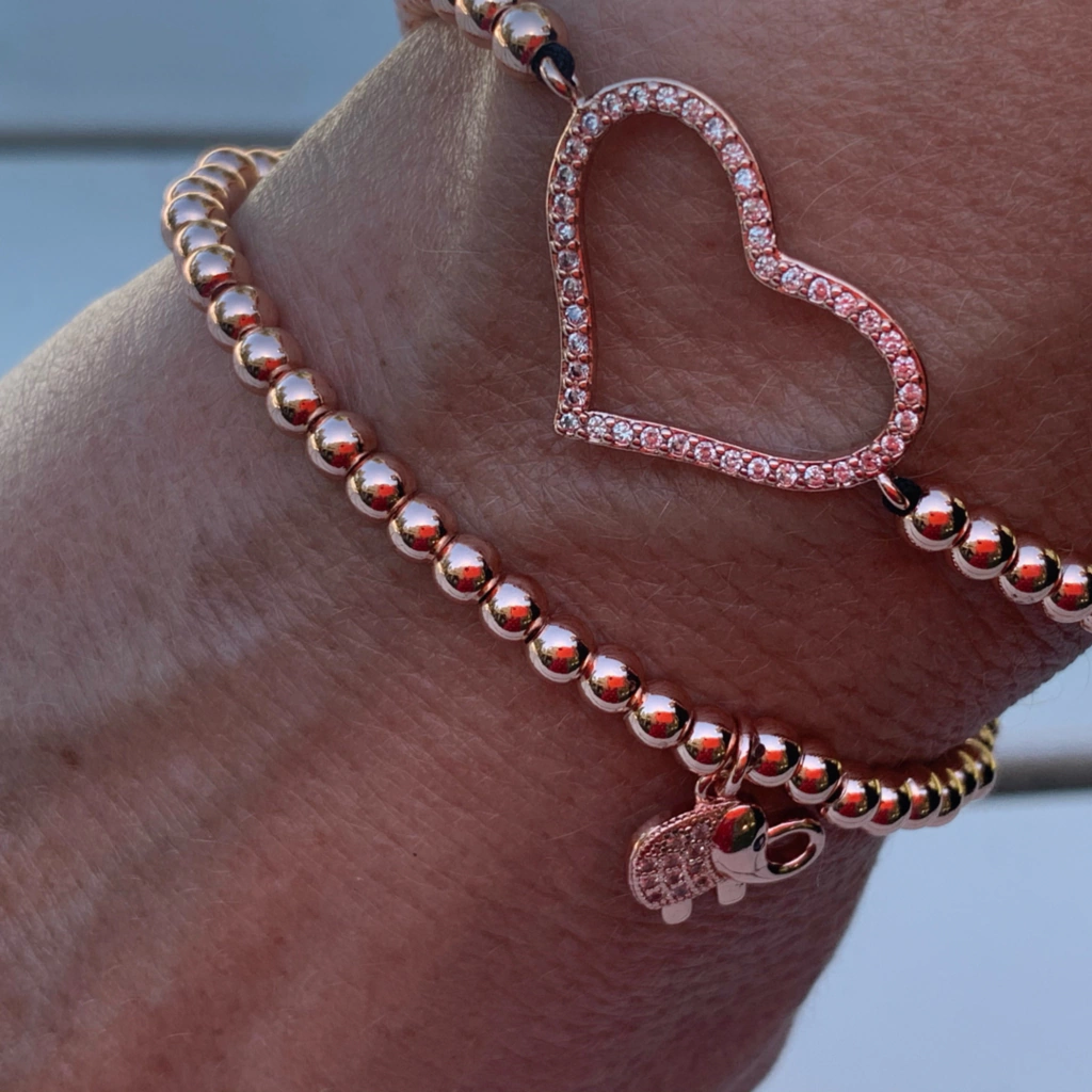 Material aleación con baño de oro rosado y corazón piedras cubic zirconia
